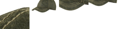 This cap has an oiled leather look thanks to a pigment print. Distressing and contrast stitching add to its worn-in, outdoorsy style.
