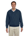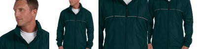 65% polyester, 35% cotton shell; Breathable mesh lining; Yoke vents allow for air movement and easy embroidery access; Elastic cuffs and waist; Self-locking outside pockets; Inside zip pocket; Windguard-covered front-zipper;