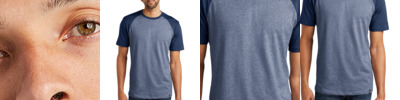 This moisture-wicking, snag-resistant tee combines two heather colors for a unique colorblock design.