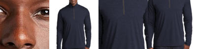 With a subtle heather texture and moisture-wicking technology, this lightweight, breathable 1/2-zip will help you achieve all your performance endeavors. 4.4-ounce, 100% polyester Tag-free label