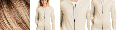 - Reverse-coil center front zipper and hand pockets