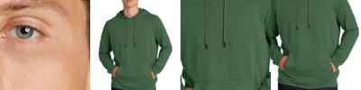The casual ease of soft French terry in a versatile pullover. 6.5-ounce, 59/41 combed ring spun cotton/poly French terry Tag-free label Three-panel hood Dyed-to-match elastic drawcords with black plastic tips Integrated front pouch pocket