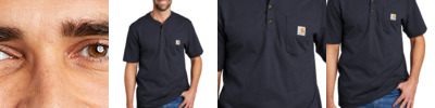 This henley is made of heavyweight cotton jersey and cut generously for a roomy fit. Durable 6.75-ounce, 100% cotton jersey knit 90/10 cotton/polyester jersey knit (Heather Grey) 60/40 cotton/polyester jersey knit (Carbon Heather) Rib knit crewneck Henley collar with three-button front Tagless neck label Left chest pocket Side-seam construction minimizes twisting Carhartt label sewn on left chest pocket Rib knit cuffs Loose fit