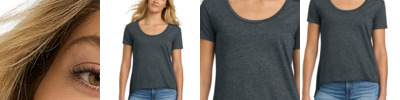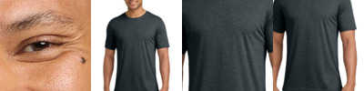 Primed for 24/7 comfort, a proprietary finish gives our tri-blend tee unbelievable softness at a great value. 4.5-ounce, 50/37/13 poly/cotton/rayon 1x1 rib knit neck Shoulder to shoulder taping Side seamed with a contoured body for a feminine fit Tear-away label Please note: This product is transitioning from white to black tear-away labels. Your order may contain a combination of both colored labels.