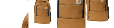 This no-nonsense pack is built for everyday hauling. Made of canvas with a water-shedding coating, it can easily handle any work or school commute. 500D polyester Rain Defender ® durable water repellent (DWR) Large main compartment with 15' laptop sleeve Front zippered pocket with 2 mesh pockets and key fob Mesh side pocket Padded shoulder straps for comfort Carhartt label sewn on front Capacity: 21L Dimensions: 17.5'h x 12'w x 6'l Note: Bags not intended for use by children 12 and under.