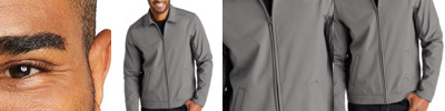 A classic style in an updated silhouette, this rugged stretch soft shell has a clean, sophisticated exterior. Wind-resistant, water-repellent performance means it¿s ideal for outdoor and casual workplaces. 100% polyester woven shell bonded to a water-resistant film insert and a 100% polyester microfleece lining 1000MM fabric waterproof rating 1000G/M2 fabric breathability rating Water-resistant finish Metal center front zipper Open hand pockets Adjustable snap cuffs and hem Rental-friendly