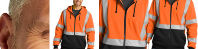 Designed for visibility, this durable heavyweight hoodie is also warm and comfortable. 8.6-ounce, 100% polyester smooth-faced fleece Black bottom front and cuffs for a cleaner appearance Durable, reflective 2-inch tape meets ANSI 107 requirements and provides 360-degree visibility on body and sleeves Three-panel hood with drawcord closure Taped neck Front pouch pockets Molded center front zippered closure Rib knit cuffs and hem This garment must be fully zipped to be in compliance with ANSI 107 standards