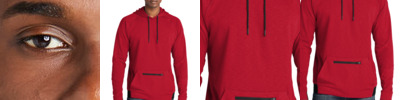 Achieve what you strive for in this elevated, moisture-wicking style that has a soft, natural hand and a slub appearance. PosiCharge technology keeps the colors strong and vibrant. 8.9-ounce, 90/10 poly/cotton fleece Three-panel hood Tear-away removable label Raglan sleeves with coverstitching Zippered mesh pocket on front pouch pocket Half elastic, half self-fabric cuffs and hem for comfort
