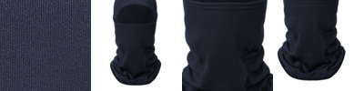 94/6 poly/spandex Brushed fleece interior Can easily stretch opening under nose and mouth for additional breathability Articulated seams at neck and sides of face for fit