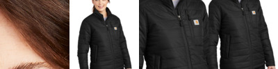 Keep working through cold, wet weather in this women's version of our popular Gilliam Jacket. 1.75-ounce, 100% nylon Cordura ® shell Rain Defender ® durable water repellent Wind Fighter ® technology tames wind Nylon lining quilted to 100-gram, 100% polyester insulation for warmth Reverse coil center front zipper Zip-through collar Left chest map pocket with reverse coil zipper Two hand pockets with hidden snap closures Two interior pockets: one zippered, one hook and loop closure Hook and loop adjustable cuffs Drawcord adjustable drop tail hem Carhartt-strong, triple-stitched main seams Carhartt label sewn on chest pocket Carhartt Warmth Rating Earned: Level 2â¿¿Warmer Relaxed fit