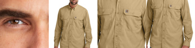 You can't control the weather, so you might as well dress for it. With a sun-smart UPF 50+ rating, this quick-drying, lightweight, woven shirt sheds sweat to regulate your body temperature in a range of conditions. 2.9-ounce, 71/29 poly/nylon chambray Carhartt Force technology wicks sweat, dries fast and fights odors FastDry ® technology keeps you cool for all-day comfort Rugged Flex ® technology for ease of movement UPF 50+ Button-down collar Back yoke shoulder pleats for ease of movement Two chest pockets with pen stalls, mitered flaps and button closures Two-button adjustable cuffs with extended plackets Carhartt label sewn on left chest pocket Relaxed fit