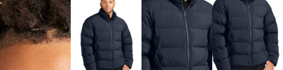 With wider baffles for a modern look, this water-resistant puffer looks cool while keeping you warm. 100% polyester shell and lining Molded center front zipper Interior storm flap Interior right chest pocket Zippered hand pockets Insulation method: 4.4-oz. polyfill Water protection method: water-repellent finish Port Pocket for decoration access Adjustable hem with locking drawcord