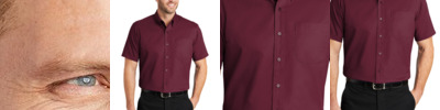 - 65/35 poly/cotton with soil-release finishYarn-dyed fabricOpen collar with sewn-in staysMelamine collar buttonMelamine buttonsTwo button-through pocketsBartacked pencil stall on left pocket
