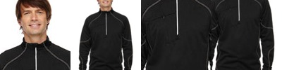 100% polyester brushed back fleece, 7.4 oz./yd2/250 gsm; Moisture wicking performance; chin guard; front reverse coil zipper with reflective asymmetric piping; chest pocket with reverse coil zipper and zipper garage; contrast coverstitch details; reflective piping at back raglan seams;