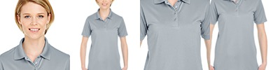 4.5 oz., 100% polyester; Anti-bacterial; Moisture-wicking; Pill-resistant; Snag-resistant; Stain-resistant; UPF 50+ protection; flat-knit collar; 4-button clean-finished placket with dyed-to-match buttons; neck tape; double-needle sleeves and curved bottom hems;