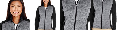 6.49 oz./yd2 / 220 gsm, 100% polyester mélange jersey bonded with fleece; Center front coil zipper with semi autolock slider ; Front and back princess seam for flattering feminine fit; Front hand-warmer pouch pocket; Tonal coverstitch details at shoulders;