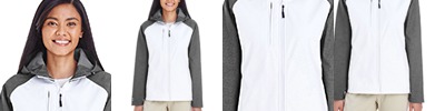 Lightweight, soft shell outer fabric in 96% polyester, 4% spandex bonded to brushed jersey; 96% polyester, 4% spandex bonded to brushed jersey; Dry-Excel™ Maze Mesh inserts at shoulders; Sleeves, hood and panels have the Tech Print pattern detail; Adjustable hood; Adjustable drop tail hem with hidden drawcord; Dual front and chest zippered pockets; Dual inside pockets;