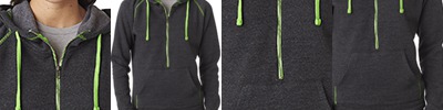 7 oz., 100% spun polyester fleck fleece; Contrast zipper and front pouch pocket; Thumbholes on cuffs;