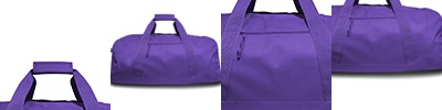 600D polyester fabric/50% recycled material; Large zippered main compartment; Detachable/adjustable wide shoulder strap for comfort; Front zipper pocket; Color-matched hardware; Padded handle wrap for carrying comfort; 27" x 13" x 13 "/Suggested Imprint: 8"W x 6"H;