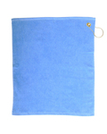 100% cotton; terry velour; 16" x 25"; Dobby hemmed tri-fold towel; Includes corner grommet and hook; Drop-shipments for grommeted styles are not eligible for returns;