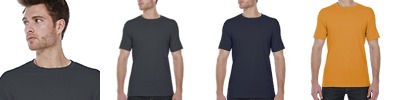 4.3oz., 52% cotton 48% polyester ; 30 singles ; Side seams; retail fit; Tear-away label; Favorite pocket tee; Ultra-fine cotton blend; Made in a W.R.A.P. certified factory;