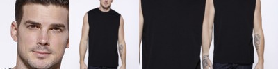 4.3oz., 52% cotton 48% polyester ; 30 singles ; Side seams; retail fit; Tear-away label; High neck line; Cutoff shoulders; Made in a W.R.A.P. certified factory;