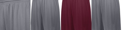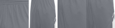 Two layers of 100% polyester wicking knit ; Wicks moisture away from the body ; Full-cut ; Fully reversible ; Covered elastic waistband with inside drawcord ; Each layer hemmed separately for embellishment ; 9-inch inseam ;