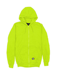 9 oz., 100% polyester fleece; 5 oz., lightweight 100% polyester mesh lining; ANSI/ISEA 107-2015 type R class 3 certified; 2" reflective tape; Nylon front zipper; Double layered three-piece hood; Oversized front pockets; Knit cuffs and waistband;
