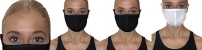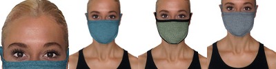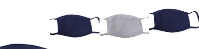 4.3 oz, 30 singles; Solid Colors: 100% combed ringspun cotton; Heather Colors: 52% cotton, 48% polyester; Sold in pack quantities of 48, 1 unit = 48 masks; 25 packs/case, 1,200 masks/case; Coverstitched Ear Loops; Ultrasoft and Breathable Jersey Fabric; Made in a W.R.A.P. Certified Factory; 7" W x 5" H; Mask does not meet N95 mask standards; No guarantee item will protect user from any illness; Non-returnable;