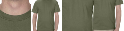4.2 oz., 100% preshrunk combed ringspun cotton; 30 singles for softness; Shoulder-to-shoulder taping; Double-needle sleeve and bottom hems; Made in the USA;