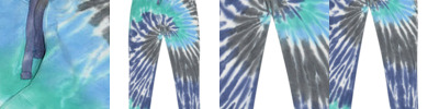 6.5 oz., 85% ringspun cotton, 15% polyester; Raw-edge waist; Hand-dyed color combinations; No two are exactly alike; Wash separately;