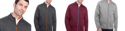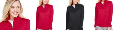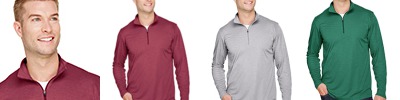 3.5 oz./yd² / 130 gsm 100% polyester sonic heather interlock; Moisture-wicking; UV 15-39 protection; Center front coil zipper with semi-autolock slider and rubber pull; Team fit; Cationic dyes to ensure superior brightness and excellent color fastness; Transitioning from heat-seal label to tear away label. Inventory may be mixed;