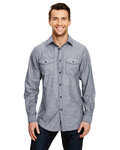 3.7 oz., 100% cotton; chambray lined collar & cuff; Left-chest pocket; Chainstitching on bottom hem; Half back yoke; Black neck taping; Modern fit;