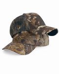 Structured six-panel, mid-profile cap heads out with a camo trim visor and camo undervisor.
