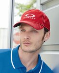 Soft garment washed cap in an unstructured silhouette with contrast color stitching.