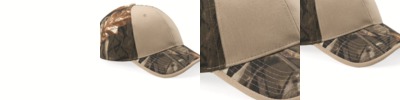Structured, six-panel, mid-profile cap with pre-curved visor and sewn eyelets in various camo prints.