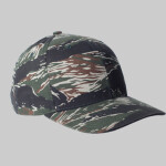 6 Panel mid profile 3.5" high crown with curved visor. Ripstop fabric. Durable, lightweight & breahable. High density tiger camo fabric.
