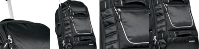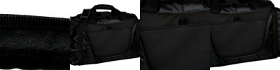 - 600 denier polyester with polyester dobby contrast Side and end pockets for easy packing Adjustable