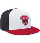 * 100% cotton * Mid-profile * Pro-model * Structured crown * Full crown * Flat round bill * Gray undervisor * Full crown eyelets * X-piping with contrast colors on some colorways * Snapback adjustable