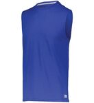 4.1 ounce 100% polyester interlock * Dri-Power(r) Moisture Wicking Technology * Heat sealed label * "R RUSSELL" on left sleeve end * Self-fabric crew neck collar * Garment protects against the sun with 30+ UPF * Set-in sleeves