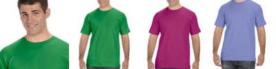 5.5 oz (9.1 oz/ly, 186 g) 100% soft spun cotton jersey (fabric blends for specific colors shown below)