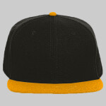 15% Wool 85% Acrylic Structured Firm Front Panel 6 Panel Cap Seamed Front Panel with Full Buckram 6 Sewn Eyelets Matching Crown Color Flat Visor 8 Rows Stitching on Visor Gray Undervisor Plastic Snap Closure Size: OSFM - Adult (58cm/22.8")
