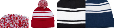 - Pom pom colors match beanie body and stripe colors