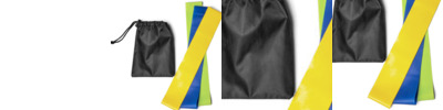 • Drawstring pouch containing three resistance bands