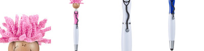 • Click-action ballpoint pen with smiley face, stethoscope-shaped clip and mop-top hair