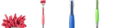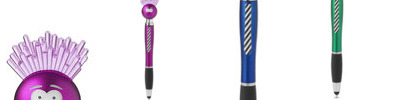 • Light-up stylus pen with “hair” and striped tie clip