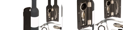 • Bottle-shaped case includes stainless steel waiter's key-style corkscrew, drip ring, and pourer with stopper