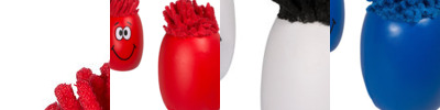 • Click-action ballpoint pen with smiley face, tie-shaped clip and mop-top hair