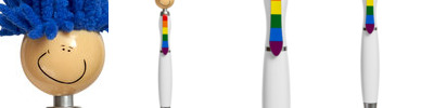 • Fun multi-function click-action ballpoint pen with fidget mop-top spinner smiley face head