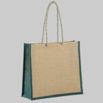This environmentally Friendly recyclable fashion tote with matching rope handles comes with wide bottom excellent for grocery stores department stores trade show give away teachers workshop conventions schools colleges family reunion safe for environment made of natural jute burlap fiber best replacement of cotton bags